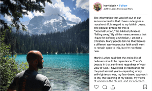 When Harris tweeted he no longer considered himself a Christian, he included an apology to lesbians, homosexuals, bisexuals, etc.,